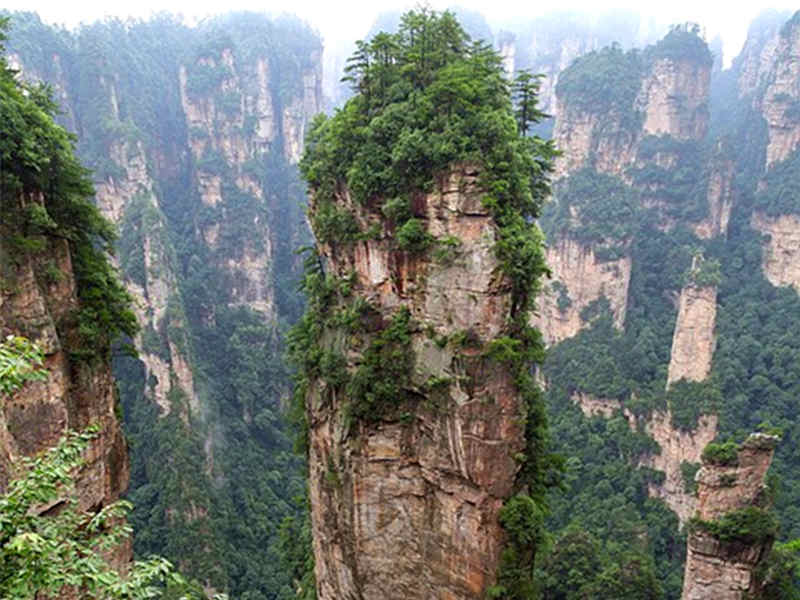 接着游览【天子山风景区】解张家界地貌构造的由来,解析张家界地貌—石英砂岩矿物的价值论证张家界大峰林亿万年不倒之奥秘,其云雾为中外旅游者所赞叹。游览【贺龙公园】、峰林之王的代表—【御笔锋】的雄秀之姿,使人浩叹大自然的鬼斧神工,游览结束后可步行下山,或乘坐天子山索道下山(下行索道费用72元/人费用自理)。