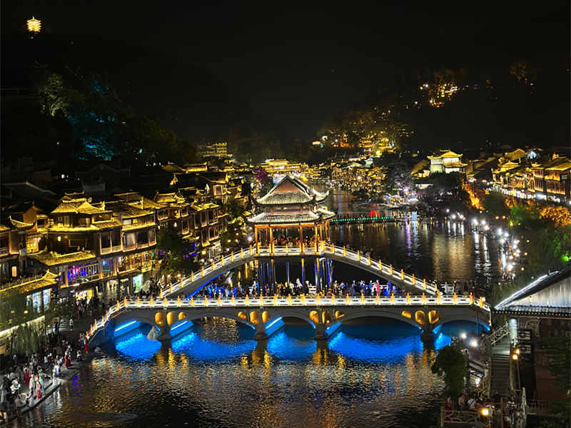 游览后乘车前往中国最美丽的小城【凤凰古城】(必自理古城接驳车28元/人),抵达凤凰后,送入住酒店。晚间可自由徜徉在夜色如织的凤凰沱江河畔,看着小情侣们河边放着许愿河灯,听着清吧的帅小伙咛喃歌唱,让你感觉坐着发呆也是一种幸福